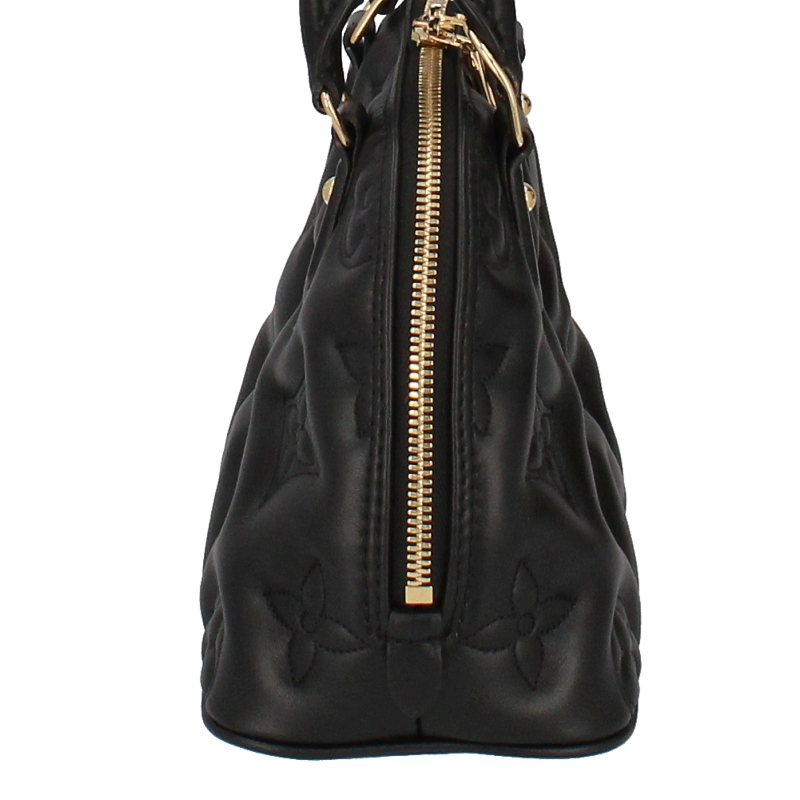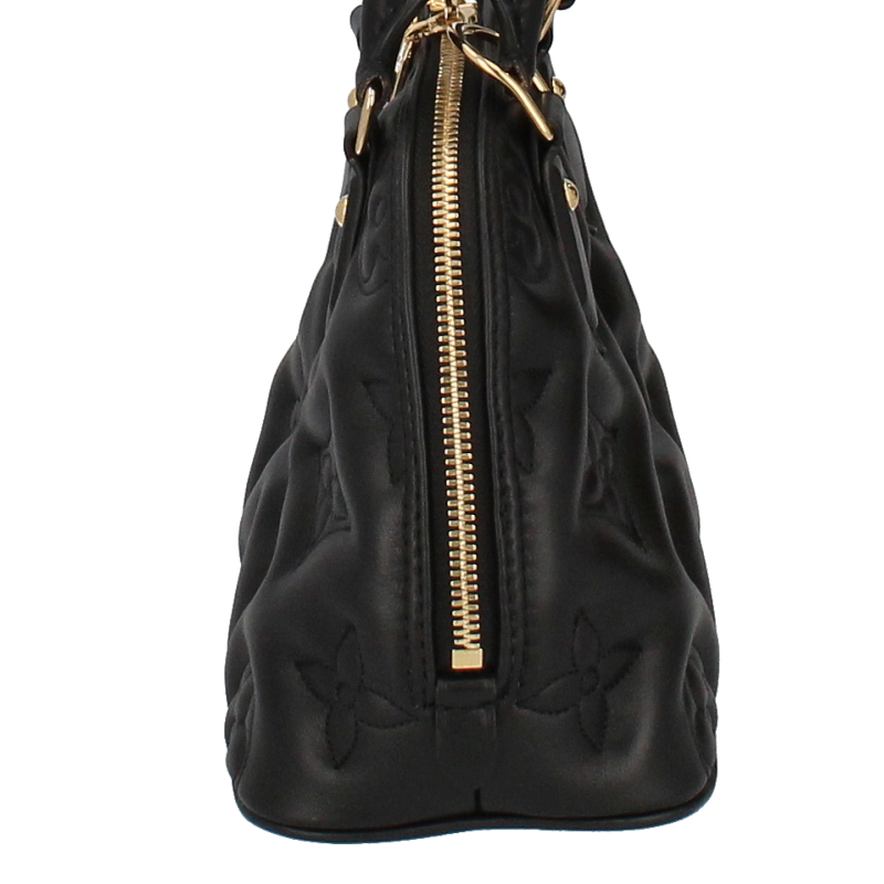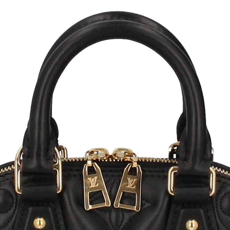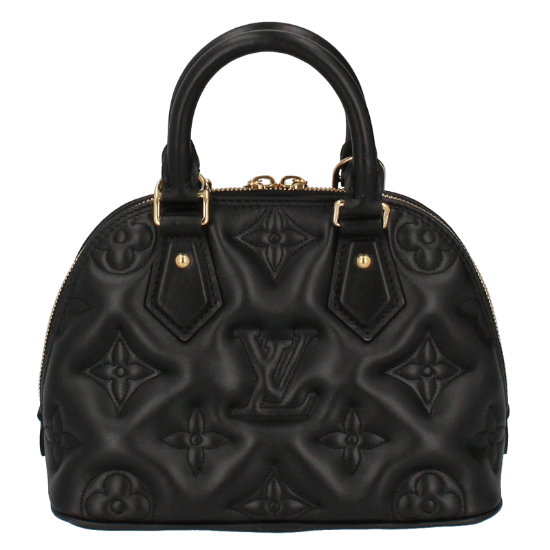 USED品。キルティング加工を施したカーフレザーにモノグラム・パターンを刺繍した、1930年代のアール・デコ調のオリジナルバッグの特徴をそのまま受け継ぐ「アルマ BB」。パフ感溢れるレザーを引き立てる、ロール仕上げの2本のレザーハンドルも魅力です。取外し&調節可能なストラップで、手持ちでもクロスボディバッグとしてもご使用いただけます。