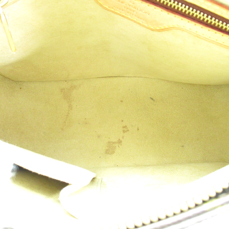 多少使用感有。ハンドルに色焼け、シミ、擦れ、擦り傷、黒ずみがあります。内部にペン跡、シミがあります。金具に傷があります。