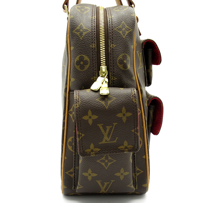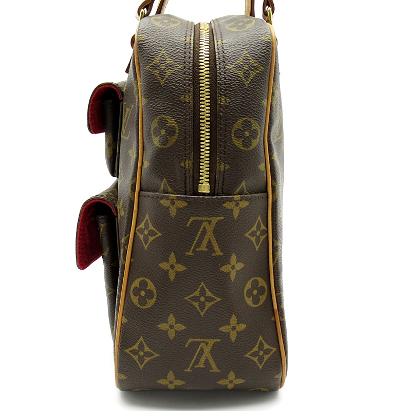 USED品。廃盤品。複数のポケットがアクセントとなった台形フォルムでキュートさはもちろんスポーティな印象であり、サイドにも携帯電話が収納出来るサイズのポケットが付いています。