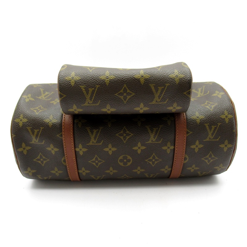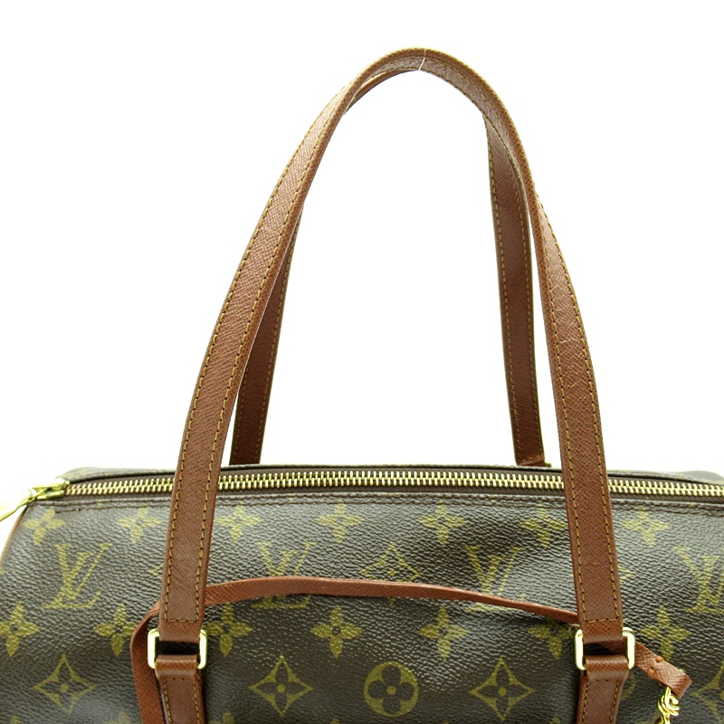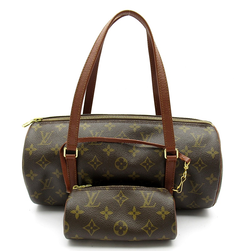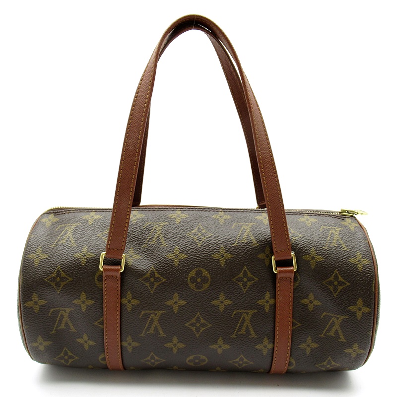 USED品。廃盤品。筒型のコロンとしたフォルムが可愛い人気のパピヨン。ちょうど良いサイズで使いやすいハンドバッグ。人気の旧型茶革タイプです。