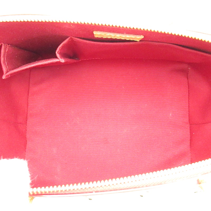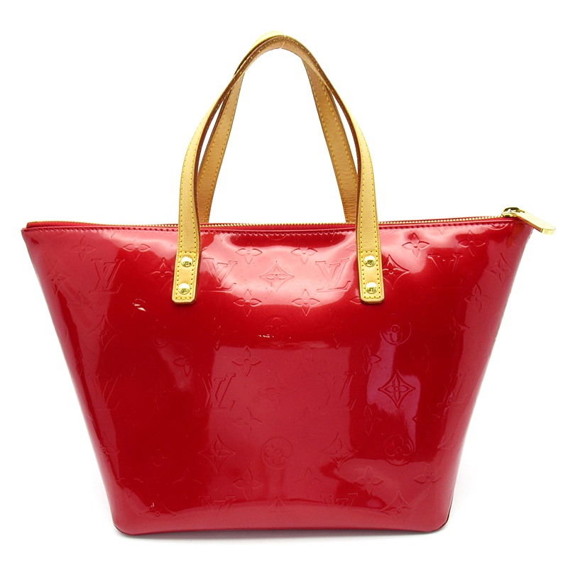 USED品。美しい光沢が魅力的なヴェルニラインの、シンプルなデザインで収納力抜群な船型フォルムのバッグ。マチも広く、収納力が抜群です。