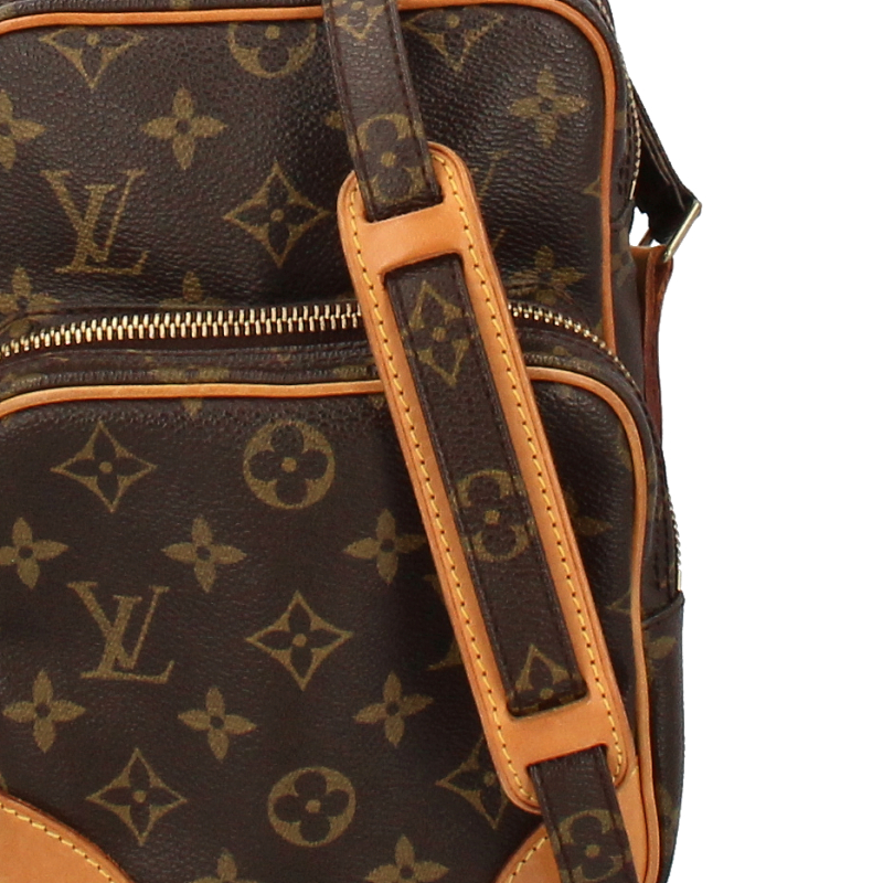 USED品。廃盤品。定番で人気のアマゾン。2段になったマチ幅のある収納ポケットがございます。斜めがけができます。