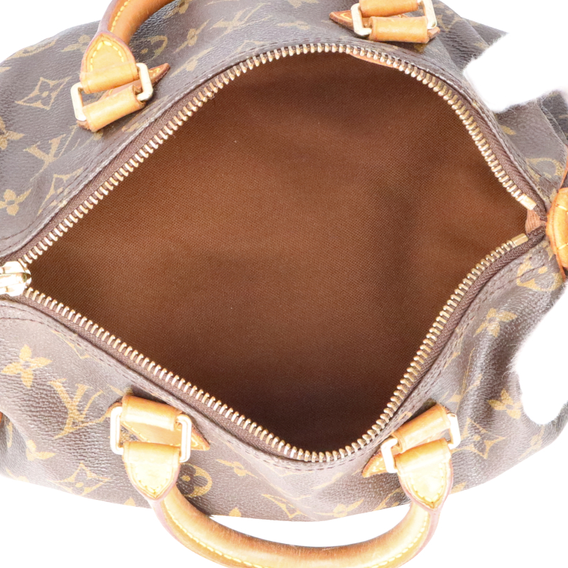USED品。しなやかなモノグラム・キャンバスを使用してエレガントなコンパクトサイズに仕上げた「スピーディ 25」。都会の日常生活に最適なアイテムです。