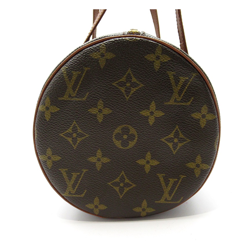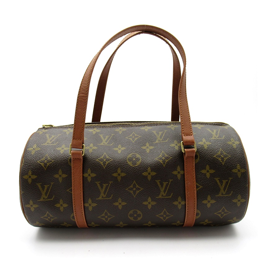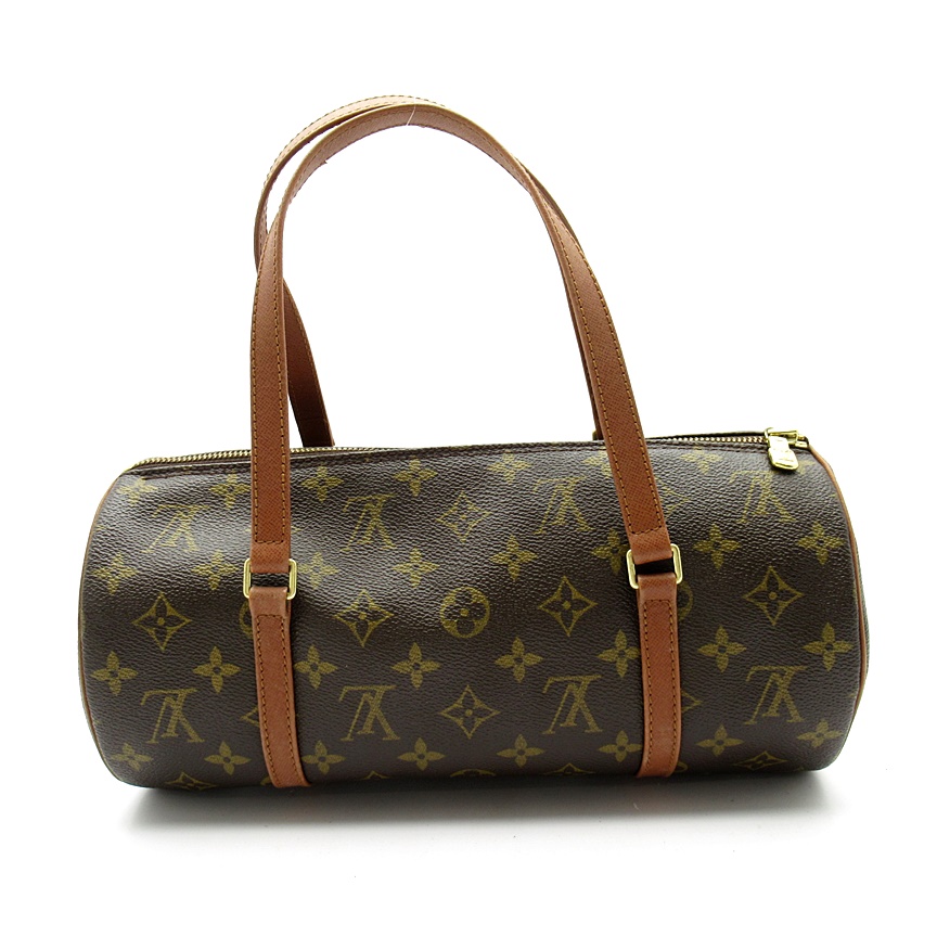 USED品。廃盤品。筒型のコロンとしたフォルムが可愛い人気のパピヨン。ちょうど良いサイズで使いやすいハンドバッグ。人気の旧型茶革タイプです。