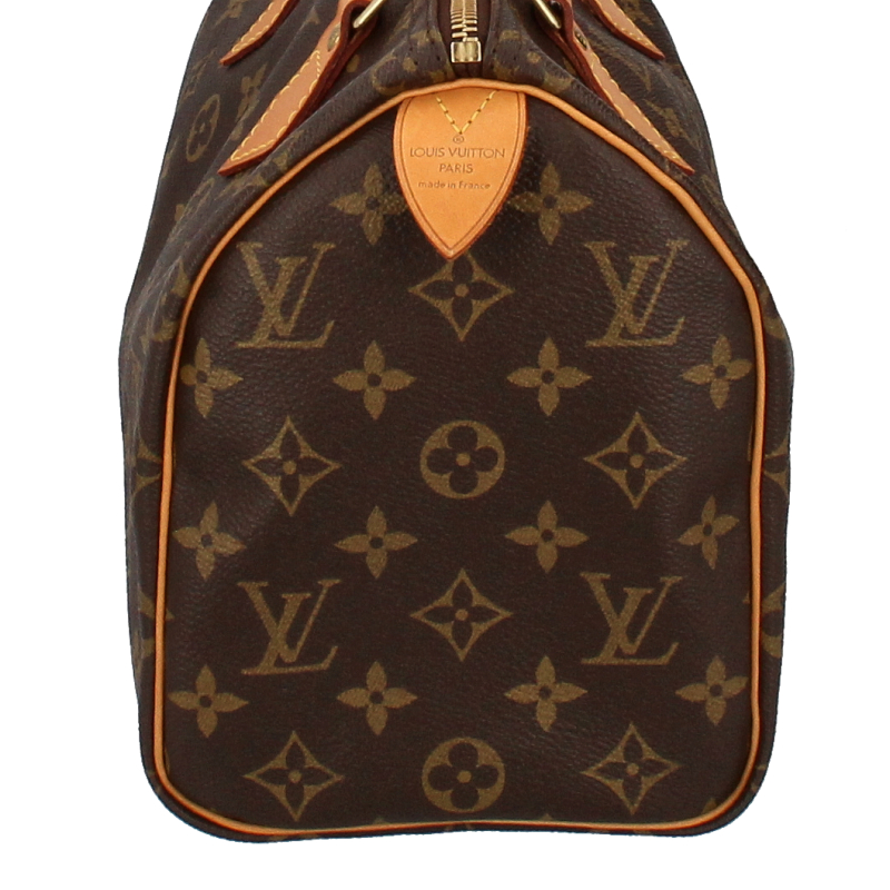 USED品。廃盤品。しなやかなモノグラム・キャンバスを使用してエレガントなコンパクトサイズに仕上げた「スピーディ 25」。都会の日常生活に最適なアイテムです。