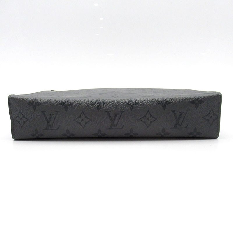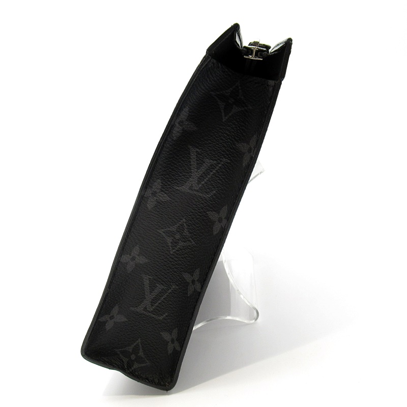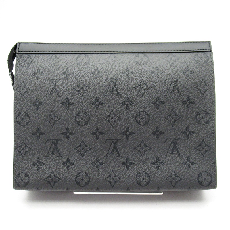 USED品。ダークな色合いのモノグラム・エクリプス キャンバスに、より明るい印象のモノグラム・エクリプス リバース キャンバスを合わせ、大胆でフレッシュな配色に仕上げた「ポシェット・ヴォワヤージュ」。ブラックのレザー製のトリミングとシルバーカラーのファスナーがスタイルを完成させる、多用途にお使いいただけるスポーティなポーチです。