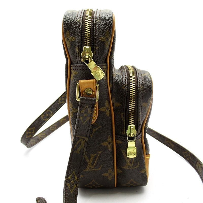 USED品。廃盤品。定番で人気のアマゾン。2段になったマチ幅のある収納ポケットがございます。斜めがけができます。