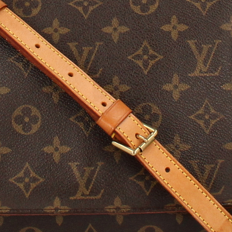 多少使用感有。角スレがあります。フラップに反りがあります。ヌメ革に色焼け、シミ、擦れ、黒ずみがあります。金具に傷、剥がれがあります。
