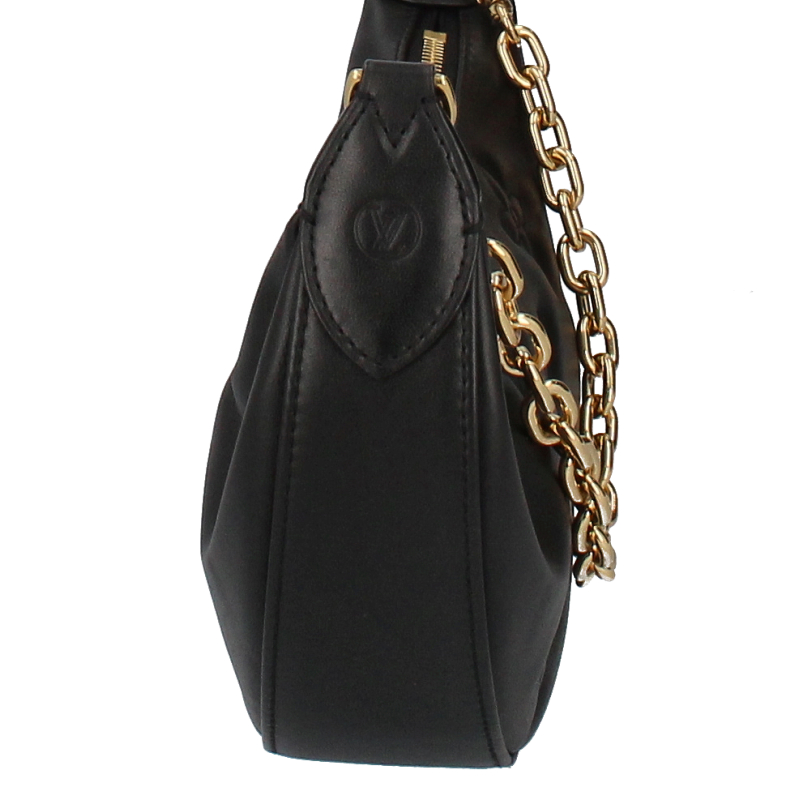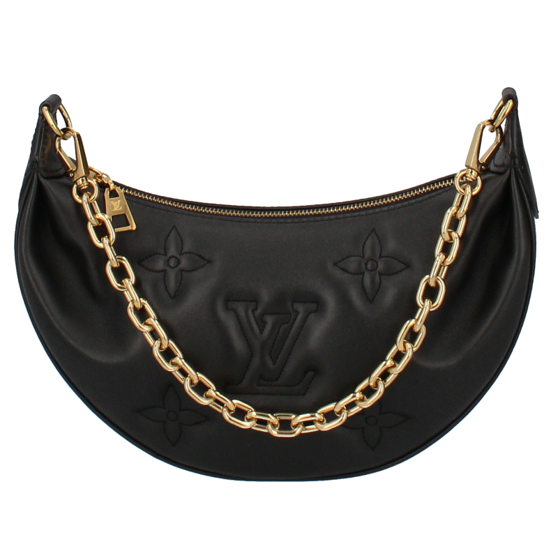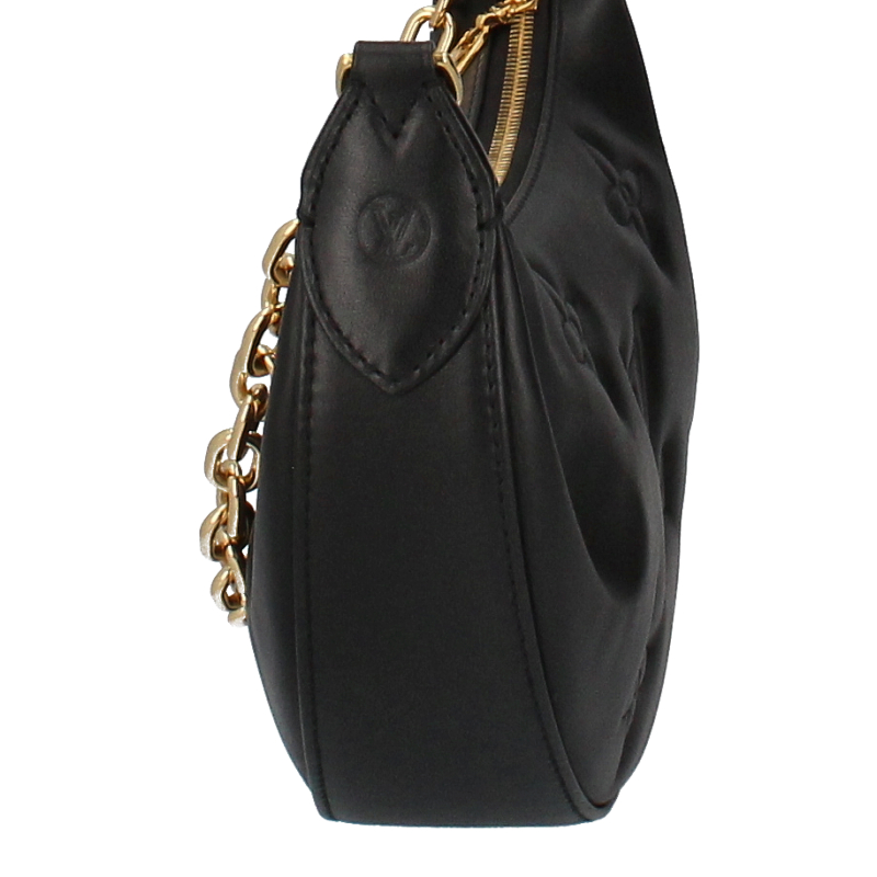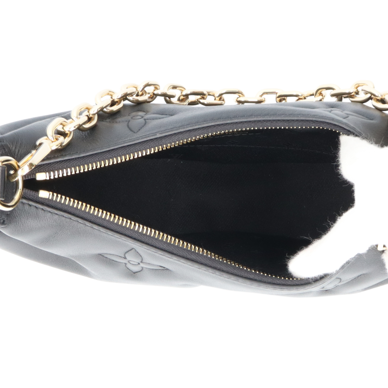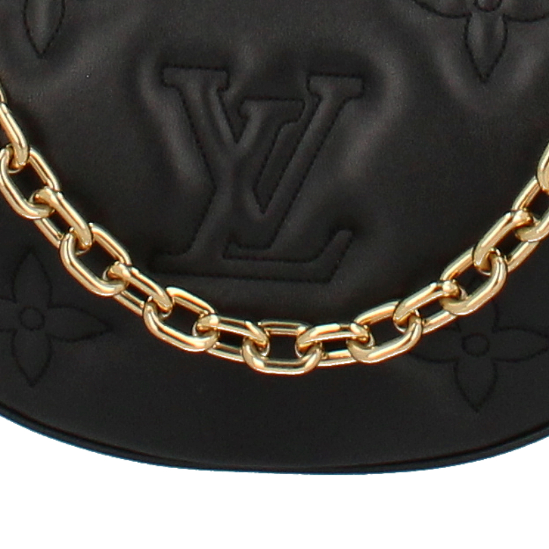 USED品。廃盤品。パフ感溢れるモノグラム・パターンの刺繍が際立つアイテムは、調節可能なストラップとゴールドカラーのチェーンで、肘に掛けたり、短めや長めのショルダーバッグやクロスボディバッグとしてなど、さまざまな持ち方が出来ます。