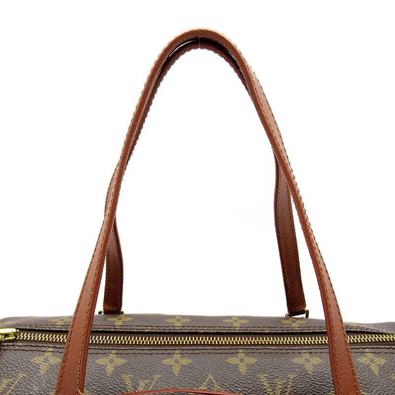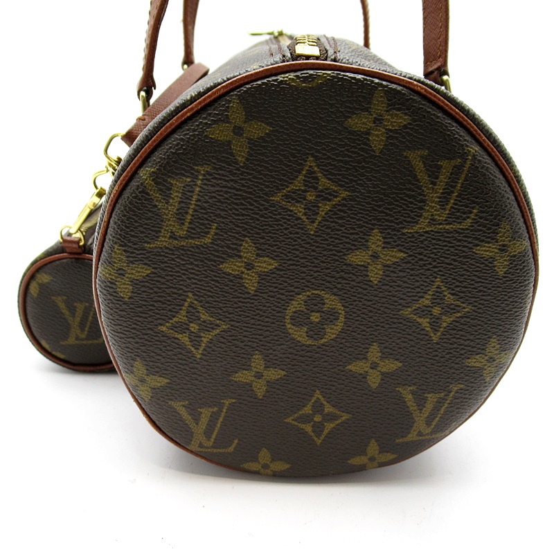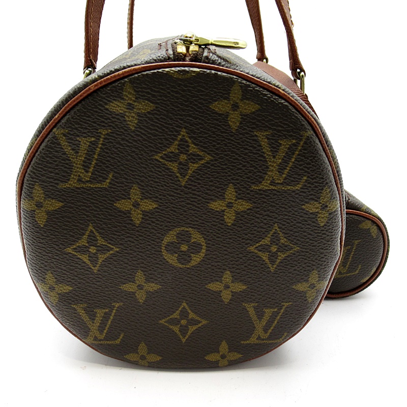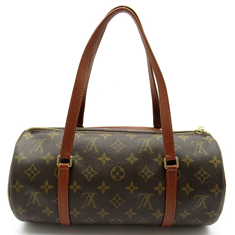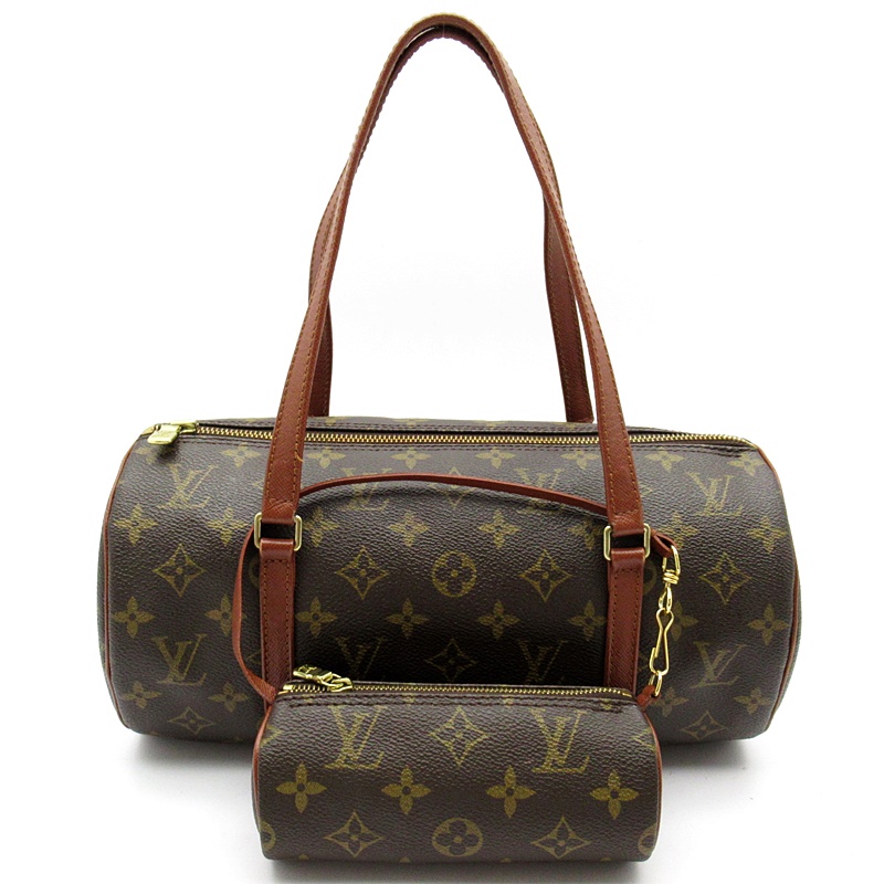 USED品。廃盤品。筒型のコロンとしたフォルムが可愛い人気のパピヨン。ちょうど良いサイズで使いやすいハンドバッグ。人気の旧型茶革タイプです。