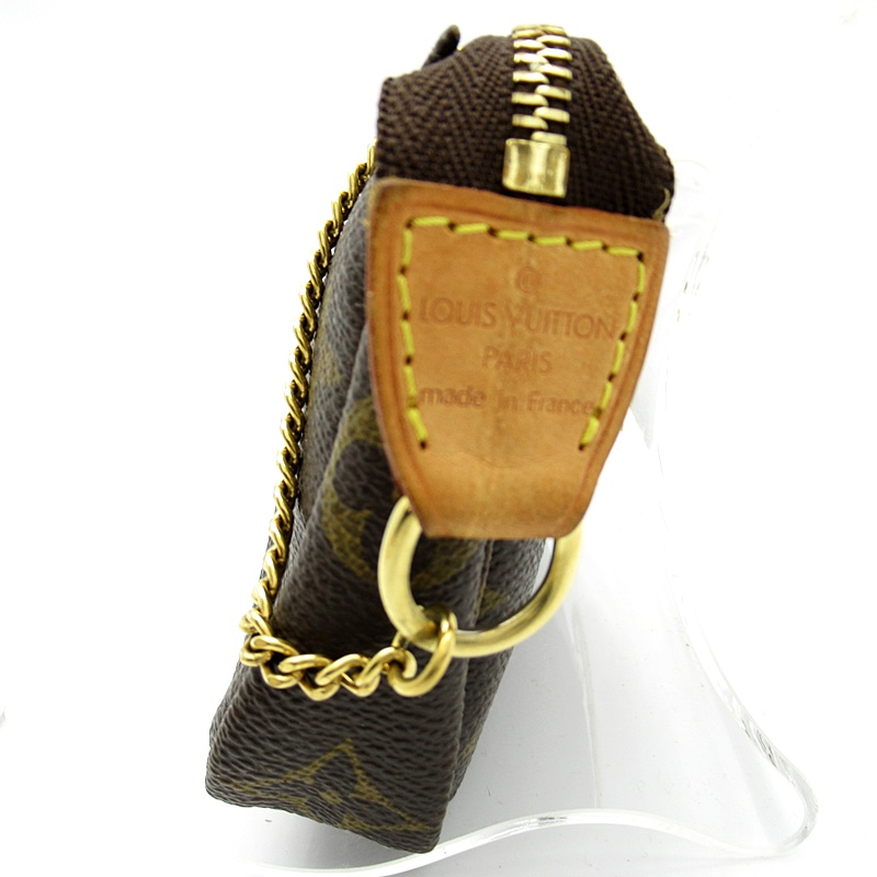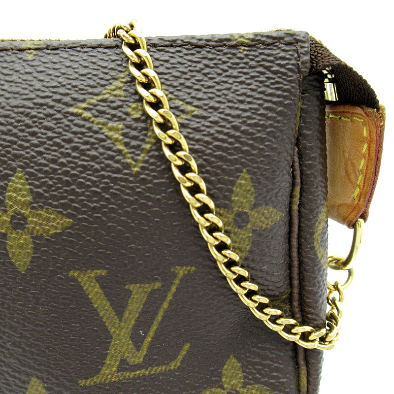 USED品。モノグラム・キャンバスで仕立てた「ミニ・ポシェット・アクセソワール」。必需品をスタイリッシュに持ち運ぶのに最適です。収納力に優れたファスナー付きのコンパートメントはクラッチバッグとしても、付属のチェーンやフックでバッグに取付けてもお使いいただけます。ラウンド型のシェイプとしなやかなモノグラム・キャンバスが魅力の、使い勝手の良いポーチです。