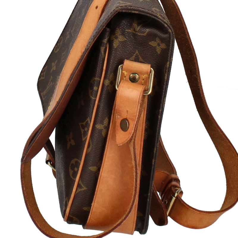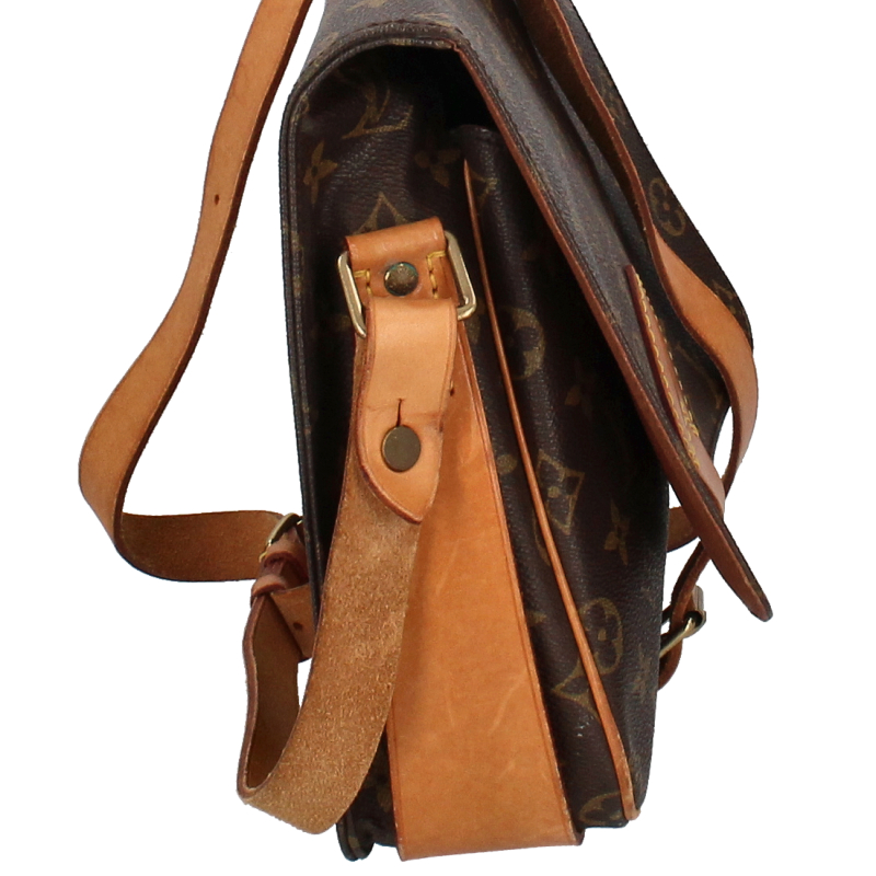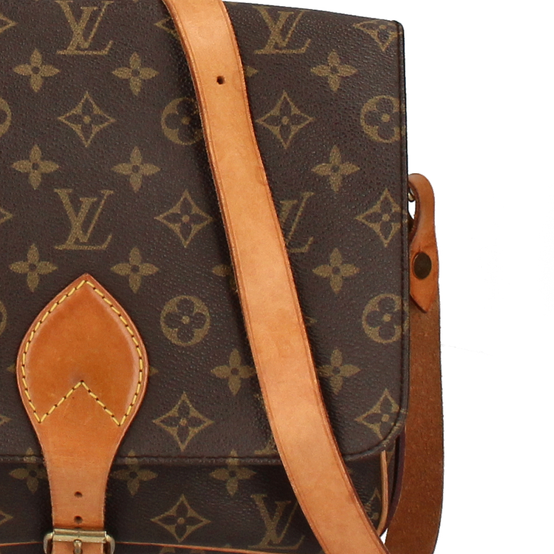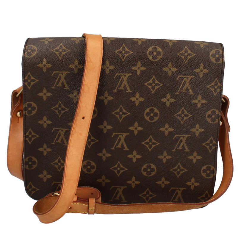 USED品。廃盤品。かっちりとしたフォルムにモノグラム柄がお洒落な「カルトシエール」。内側には仕切りがあるので収納もバッチリ。斜め掛けも可能なので、様々なファッションに合わせていただけます。