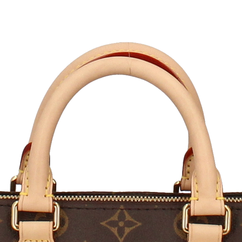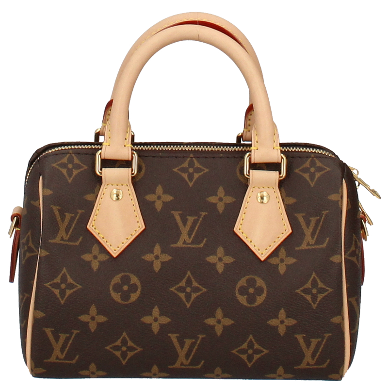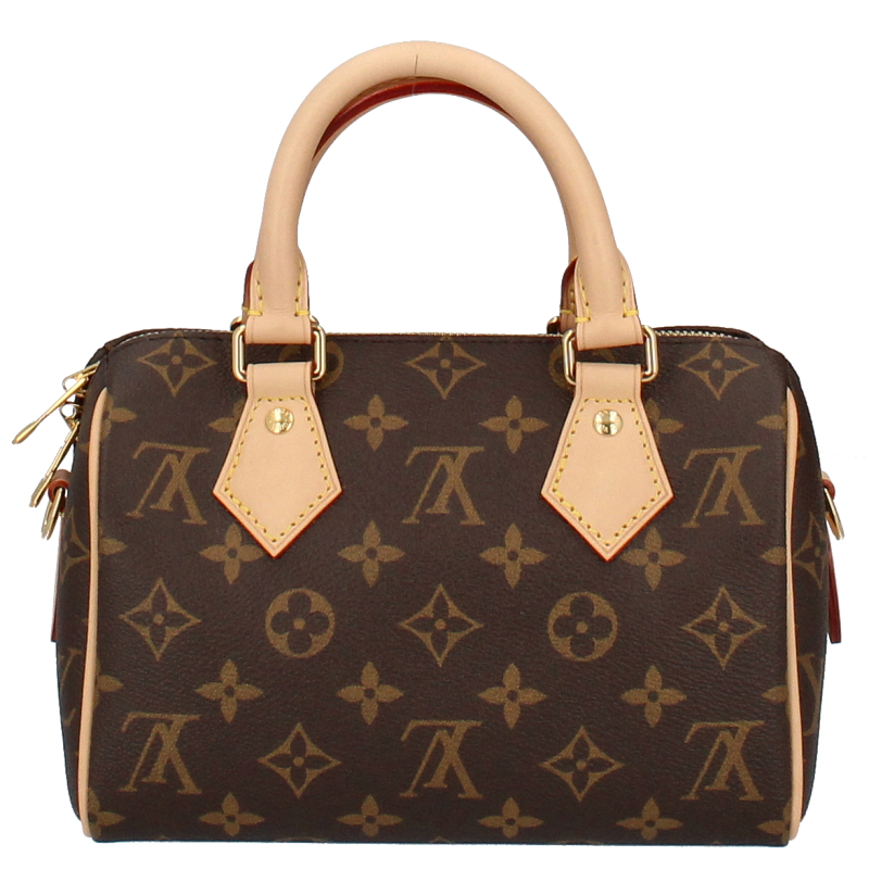 USED品。モノグラム・キャンバスにヌメ革のトリミングとゴールドカラーのメタルパーツをあしらい、ルイ・ヴィトンならではのデザインをアップデートした「スピーディ・バンドリエール 20」。独特のフォルムを彩るロール仕上げのレザーハンドル、パドロックやキーベルなど、メゾンを象徴する旅行鞄から着想を得たディテールが魅力です。