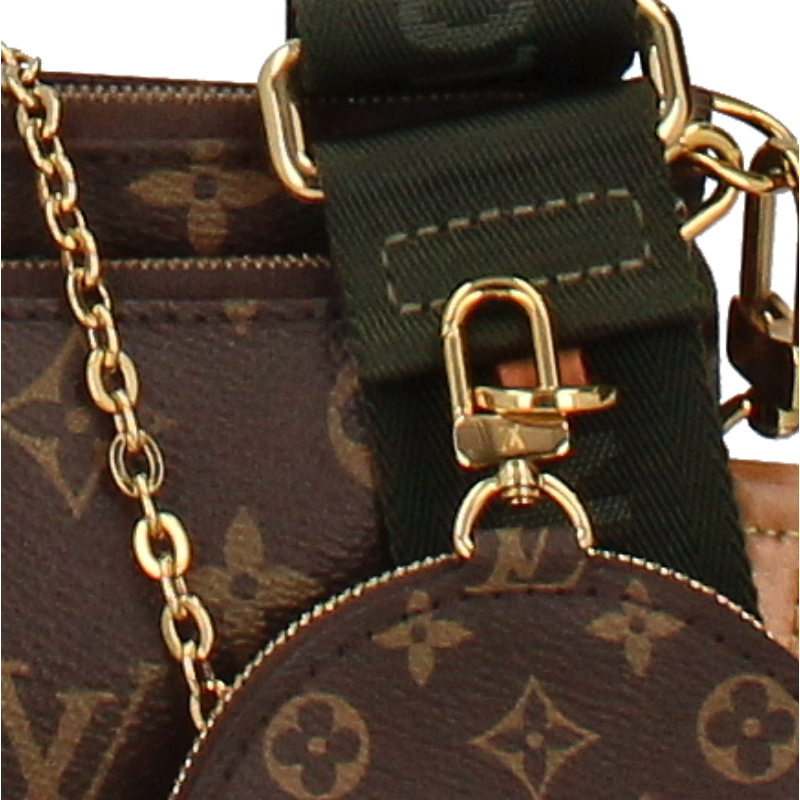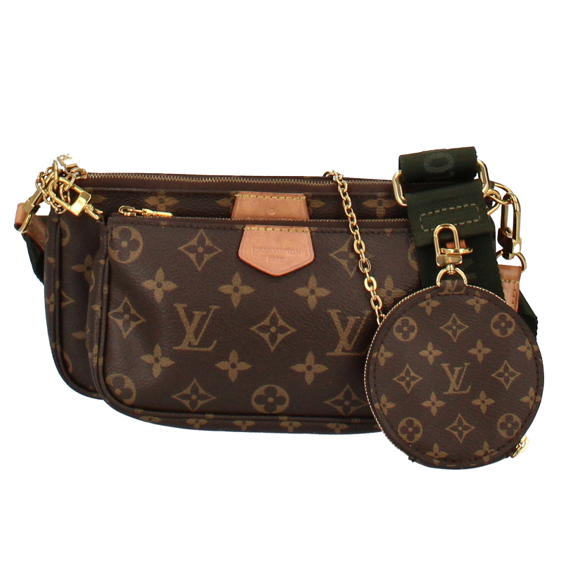 USED品。複数のポケットとコンパートメントを備え、クロスボディバッグとして多用途にお使いいただける「ミュルティ・ポシェット・アクセソワール」。「ポシェット・アクセソワール」、「ミニ・ポシェット・アクセソワール」、「ポルトモネ・ロン」を組み合わせたアイテムです。