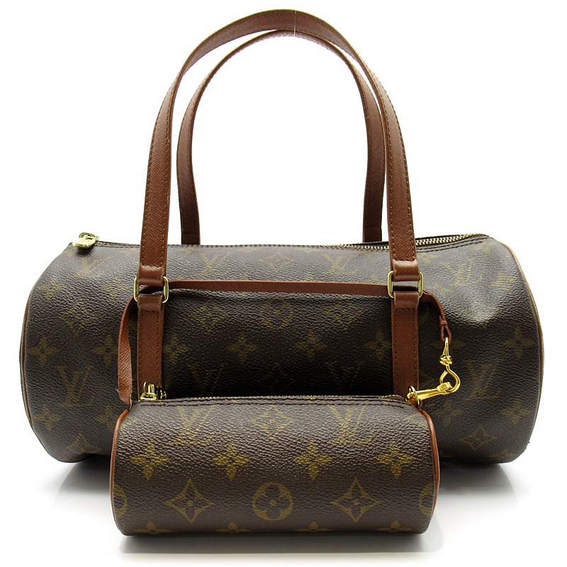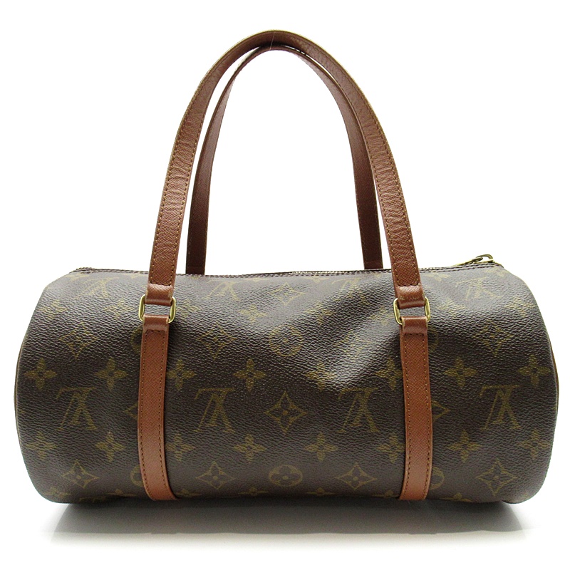 USED品。廃盤品。筒型のコロンとしたフォルムが可愛い人気のパピヨン。ちょうど良いサイズで使いやすいハンドバッグ。人気の旧型茶革タイプです。