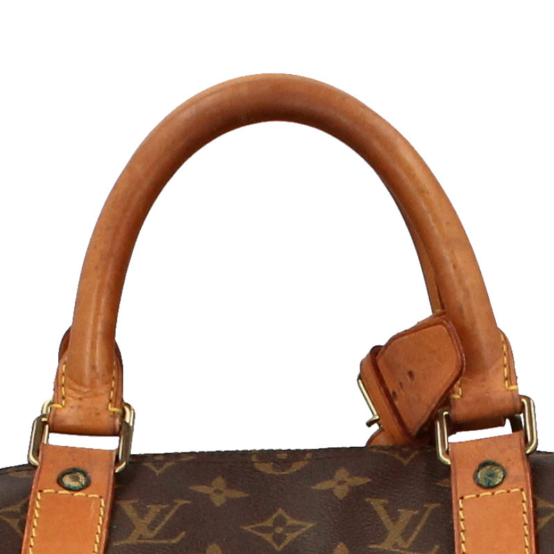 多少使用感有。ヌメ革にシミ、擦り傷、黒ずみ、色焼けがあります。内部にカビ跡、青錆の汚れが付着しています。