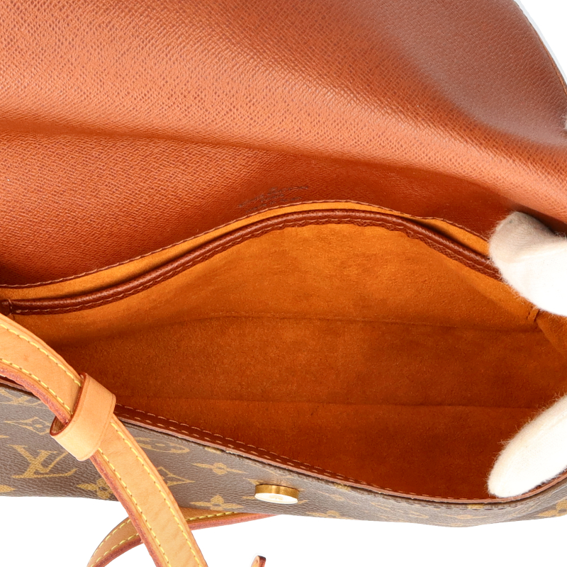 少々使用感有。ヌメ革にシミがあります。フラップの内側に汚れが少々あります。