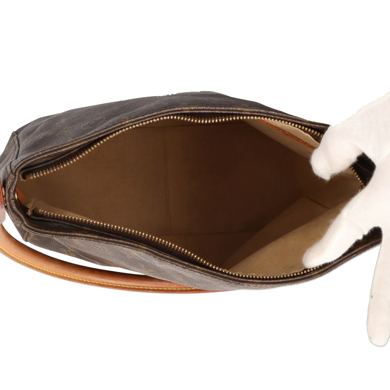 多少使用感有。ヌメ革に色焼け、シミ、黒ずみがあります。型崩れがあります。内部底面に汚れがあります。ファスナー金具に剥がれがあります。