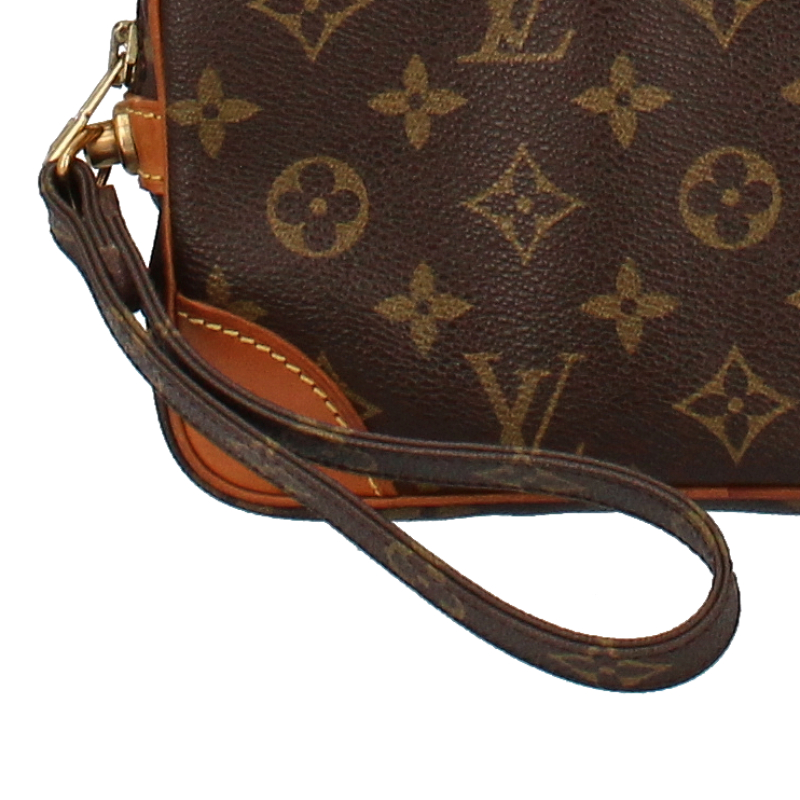 多少使用感有。ヌメ革に色焼け、シミ、擦れ、擦り傷、黒ずみがあります。金具に傷があります。内部に擦り傷があります。