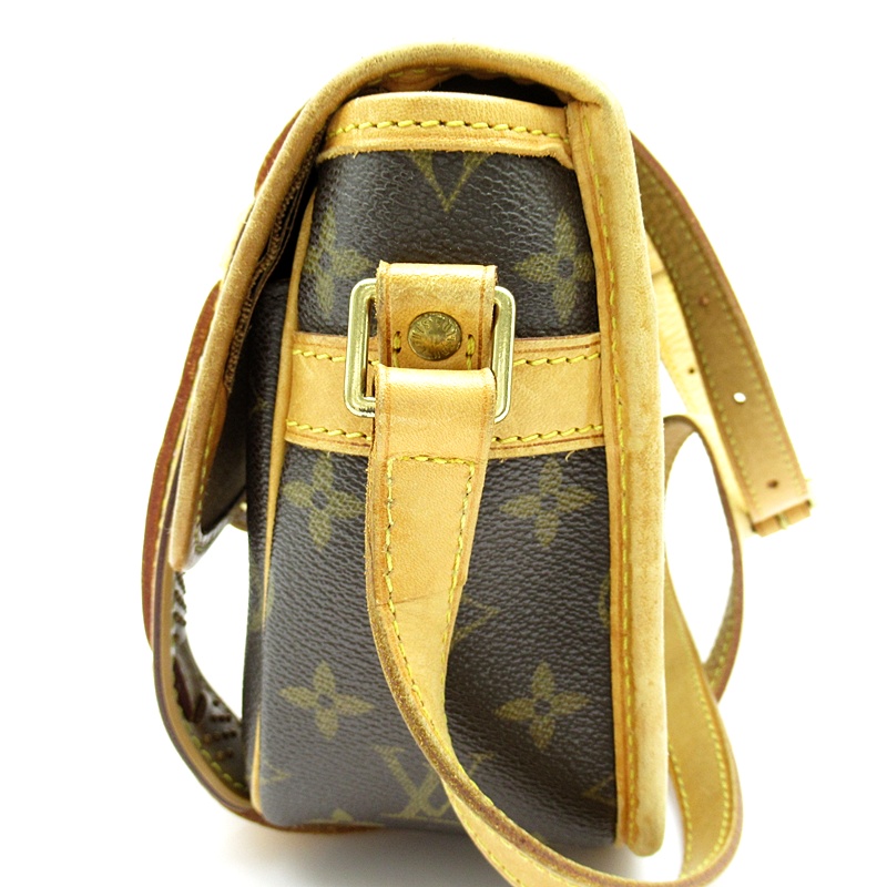 多少使用感有。ヌメ革に色焼け、シミ、黒ずみ、擦り傷があります。角スレがあります。フラップ内側にほつれがあります。内部に少々汚れがあります。