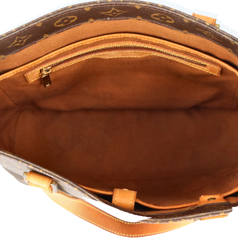 多少使用感有。ヌメ革に色焼け、シミがあります。内部にシミ汚れが少々あります。ハンドルにひび割れが少々あります。