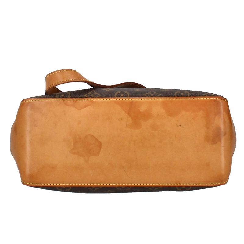 多少使用感有。ヌメ革に色焼け、シミ、黒ずみがあります。角スレがあります。底部にシミや汚れが多数あります。