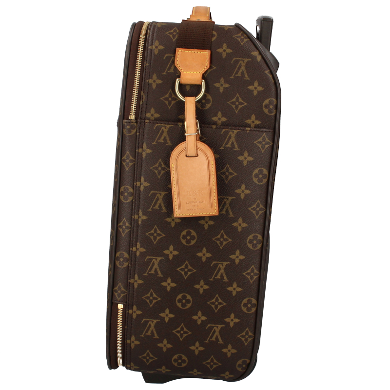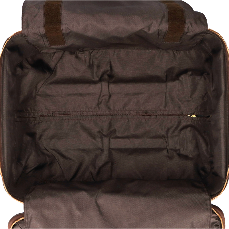 多少使用感有。ヌメ革に色焼け、シミがあります。底に擦り傷があります。タイヤに汚れがあります。ハンドルに白い汚れがあります。ネームタグにイニシャル入(K&K)。タイヤに減りがあります。