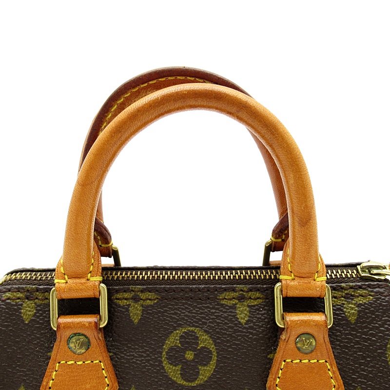 多少使用感有。ヌメ革に色焼け、黒ずみがあります。ハンドルに黒ずみがあります。角擦れがあります。金具に青錆があります。