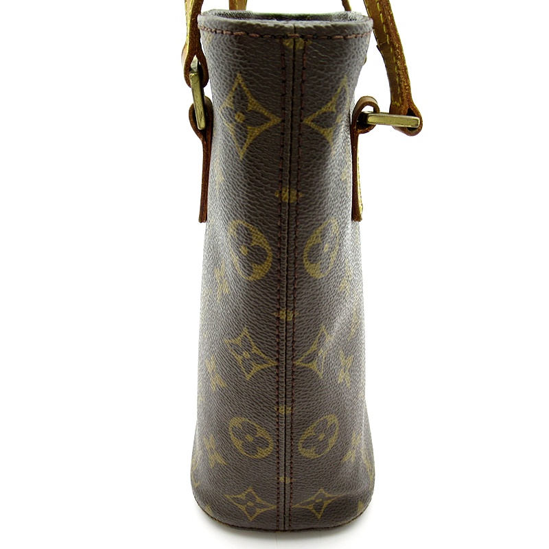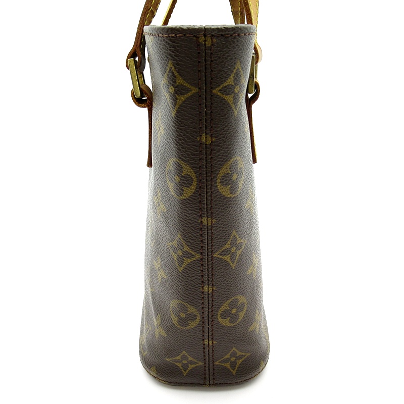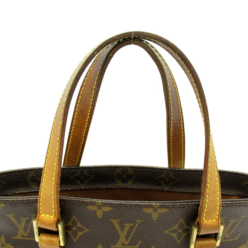 使用感有。ヌメ革に色焼け、シミ、擦れがあります。ハンドルに強い黒ずみがあります。内部にオレンジの汚れがあります。