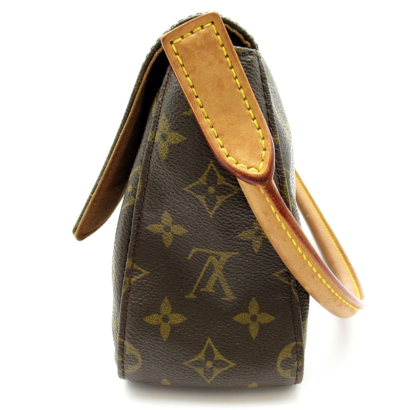 多少使用感有。ハンドルに色焼けやシミがあります。ハンドルにわずかなねじれがあります。フラップに若干の反りがあります。内部に若干のシワがあります。