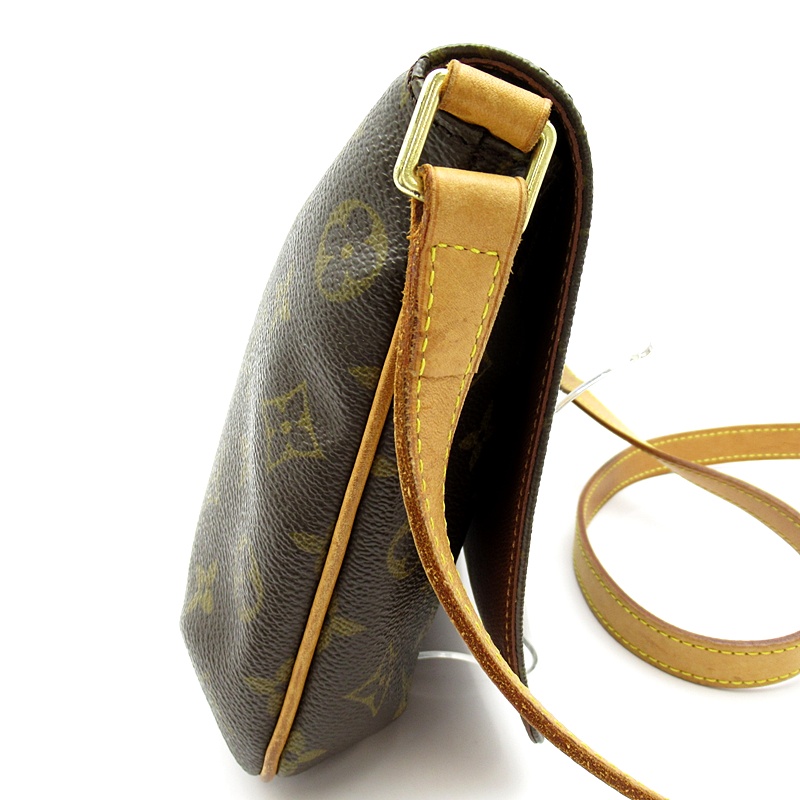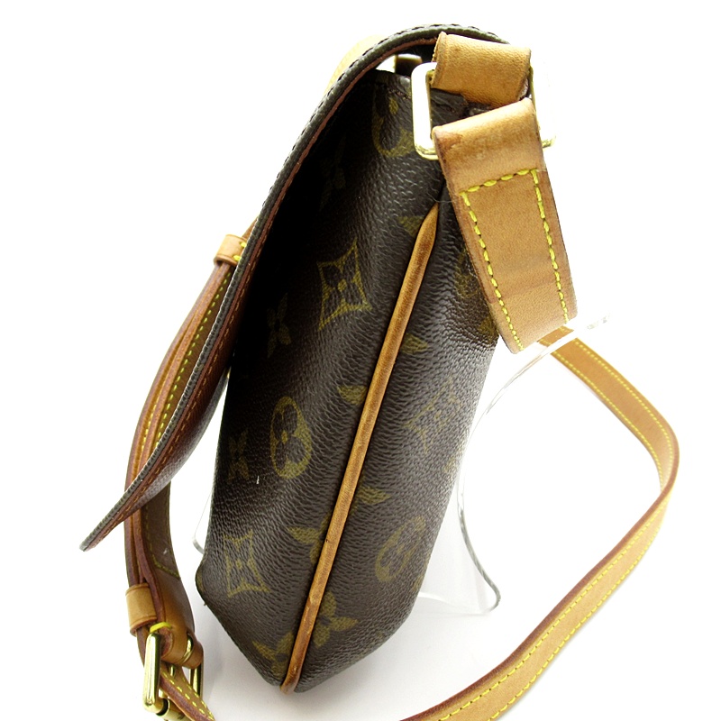 多少使用感有。ヌメ革に色焼けとシミがあります。ショルダー部分に黒ずみ、シワがあります。角擦れがあります。