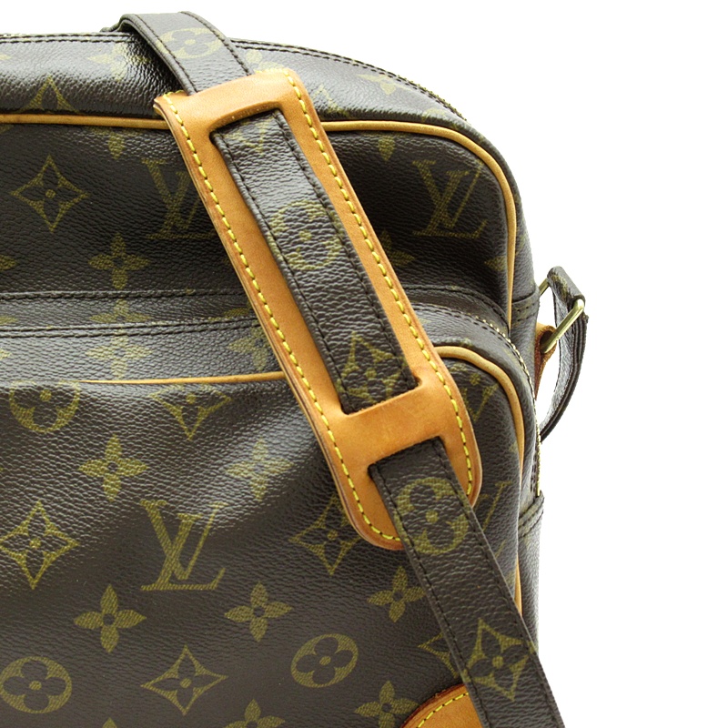 多少使用感有。ヌメ革に色焼け、シミ、擦れがあります。金具に小傷があります。内部に若干の白い汚れがあります。