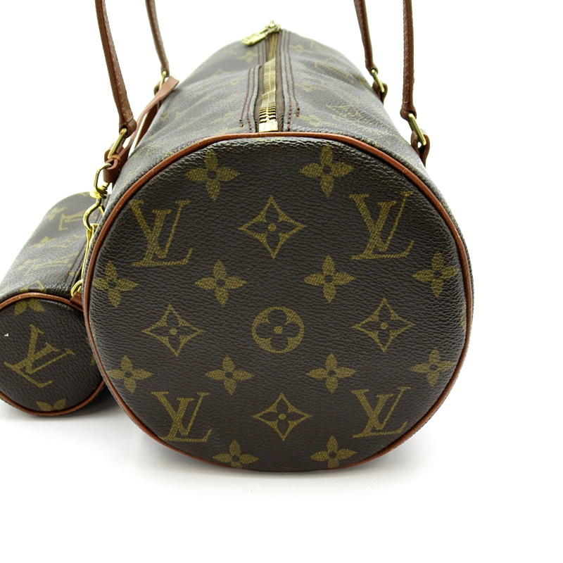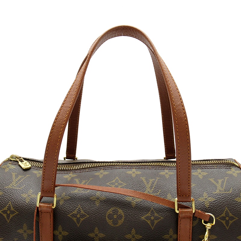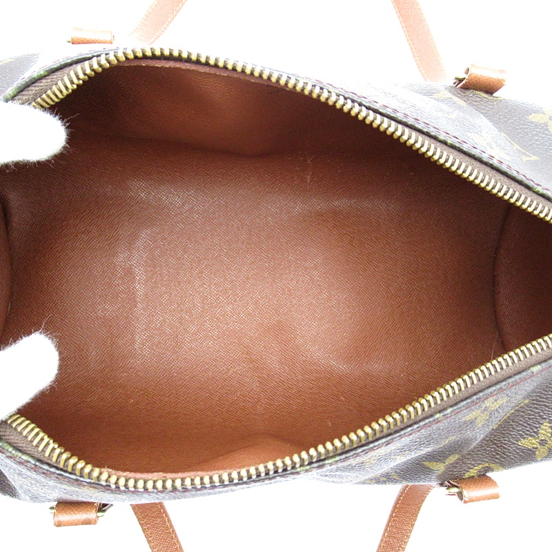 多少使用感有。角擦れが若干あります。ハンドルに若干の擦り傷があります。バッグ内部に押し跡、擦り傷があります。ポーチ内部の両側面にペン跡があります。金具に小傷、メッキ剥げがあります。