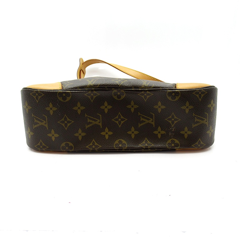 多少使用感有。ヌメ革に若干の色焼け黒ずみ、シミがあります。底面に汚れがあります。内部に若干の擦れがあります。