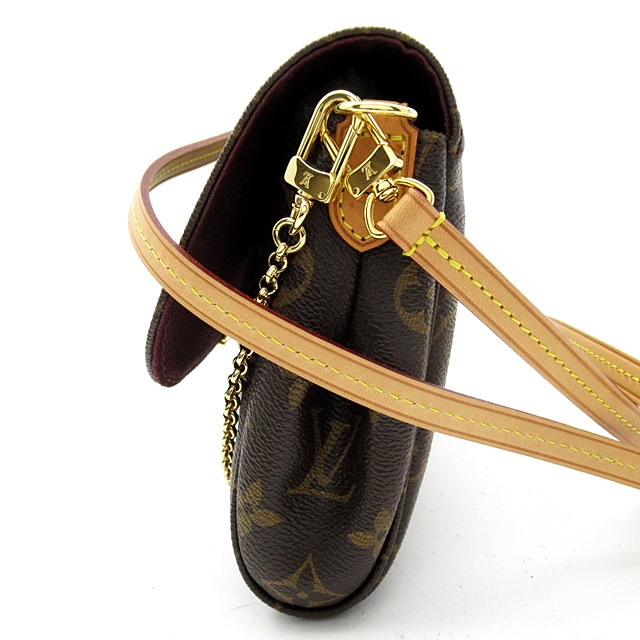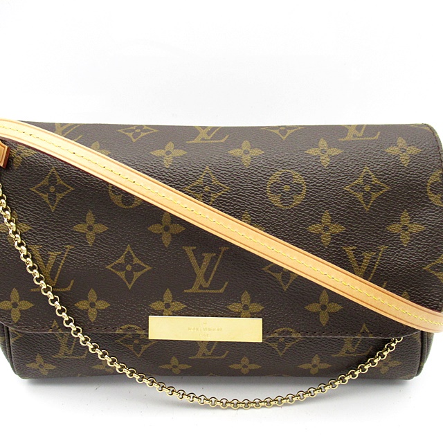 USED品。廃盤品。魅惑的なモノグラム・キャンバスの小ぶりなクラッチバッグ 「フェイボリット」は様々なシーンで使用可能な 理想的なシェイプです。ヌメ革のショルダーストラップは取り外し可能。 2WAYで楽しめる素敵なバッグです。