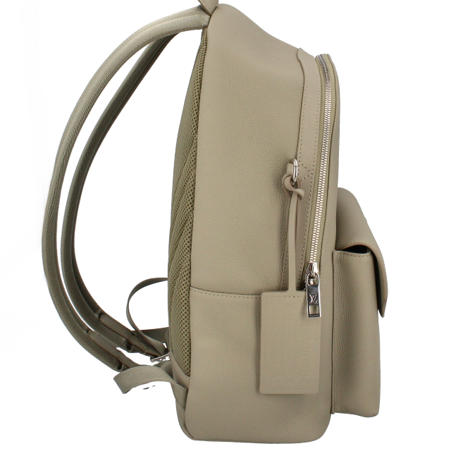 USED品。カウハイドレザーで仕立て、フロントポケットのフラップにトーン・オン・トーンのLV イニシャルをあしらった「テイクオフ・バックパック」。丸みを帯びたライン、単色の色使い、特徴的なネームタグが、一目で分かる存在感を放つ一品です。シングルハンドルと調節可能なショルダーストラップで、さまざまな持ち方をお楽しみいただけます。