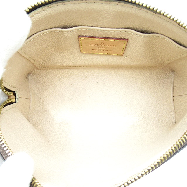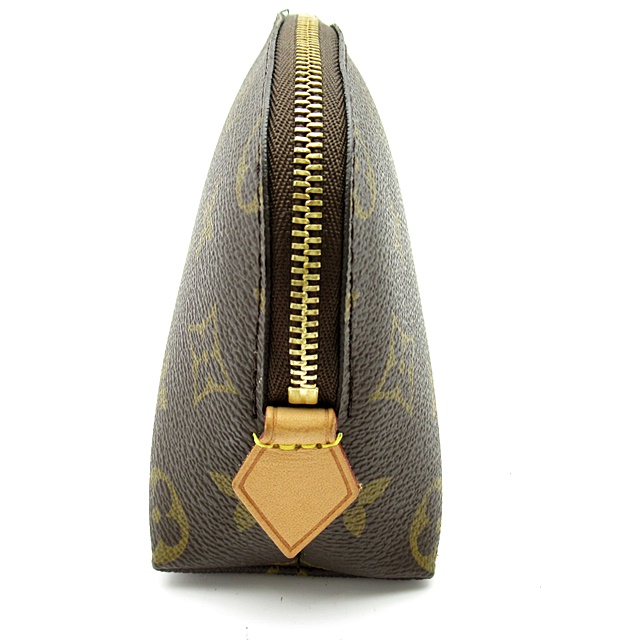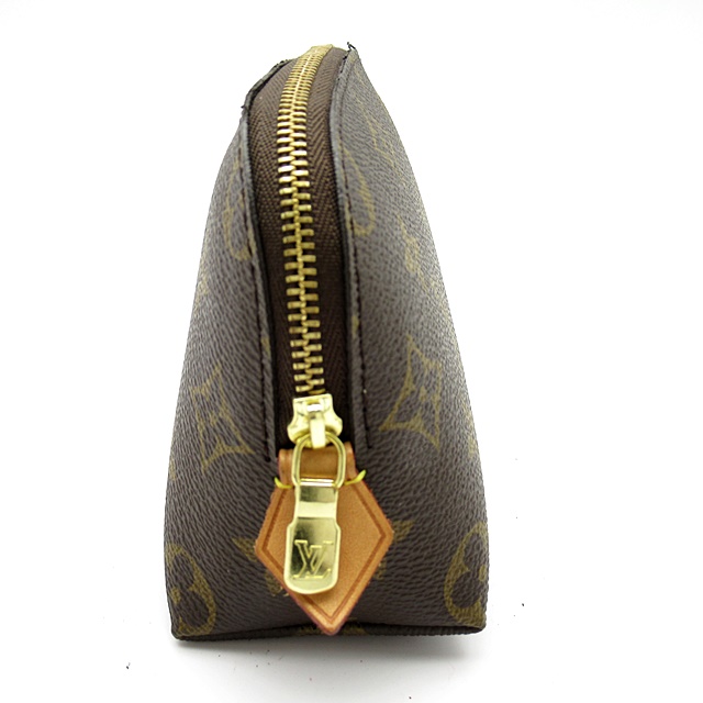 USED品。内側に防水加工が施されているので、化粧水など水気のあるものも安心して入れられます。サイドまで深めに開くファスナー式で物の出し入れもスムーズ。ポケットが付いているのも便利なポイントです。