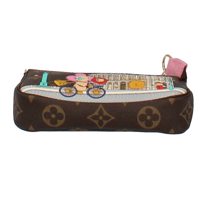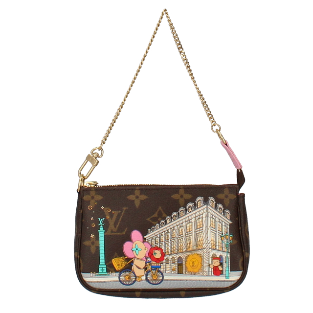 USED品。ルイ・ヴィトンのマスコット「ヴィヴィエンヌ」が視線を集める、モノグラム・キャンバスを使用した「ミニ・ポシェット・アクセソワール」。モノグラム・キャンバスで仕立て、メゾンのマスコット「ヴィヴィエンヌ」がパリのヴァンドーム広場のブティックの前に佇む姿をエクスクルーシブなプリントで描きました。
