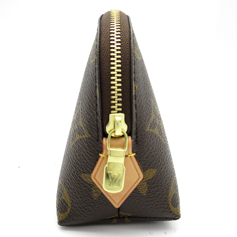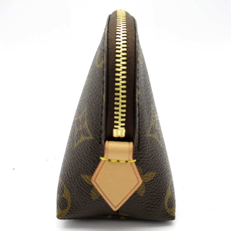 USED品。内側に防水加工が施されているので、化粧水など水気のあるものも安心して入れられます。サイドまで深めに開くファスナー式で物の出し入れもスムーズ。ポケットが付いているのも便利なポイントです。