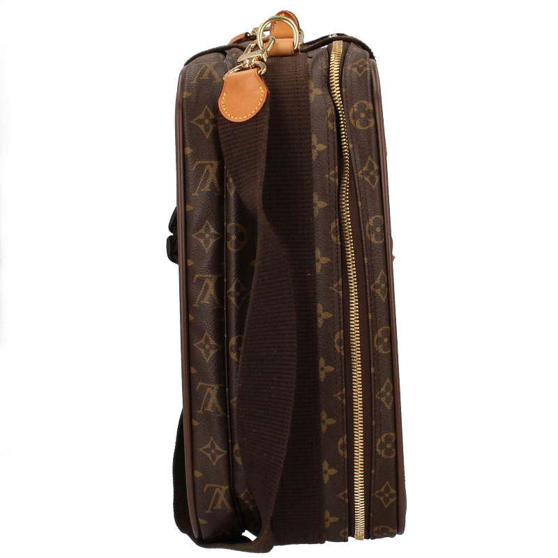 USED品。廃盤品。旅行バッグ「サテライト」。バッグ内部はカード入れの付いた大きなポケットと衣類留めバンド付きで、便利に使えます。Wファスナーで底まで大きく開き、使いやすく物の出し入れが楽々。ストラップ付きで肩掛けも可能で、ビジネスに旅行に大活躍のバッグです。