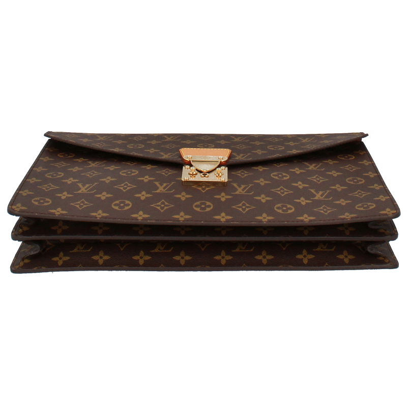 USED品。ビジネスシーンに最適なブリーフケース。マチが2つに分かれており、収納し易く、書類も折らずにきれいなまま収納可能。