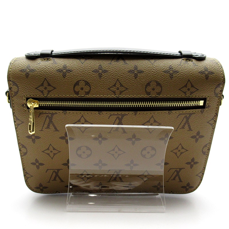 USED品。特徴的なスクールバッグ風のシルエットがファッショナブルな女性たちの視線を集める「ポシェット・メティス MM」。見た目以上の収納力を誇る多機能なアイテムは、シックなトップハンドルと取外し可能なロングストラップでさまざまなスタイルをお楽しみいただけます。