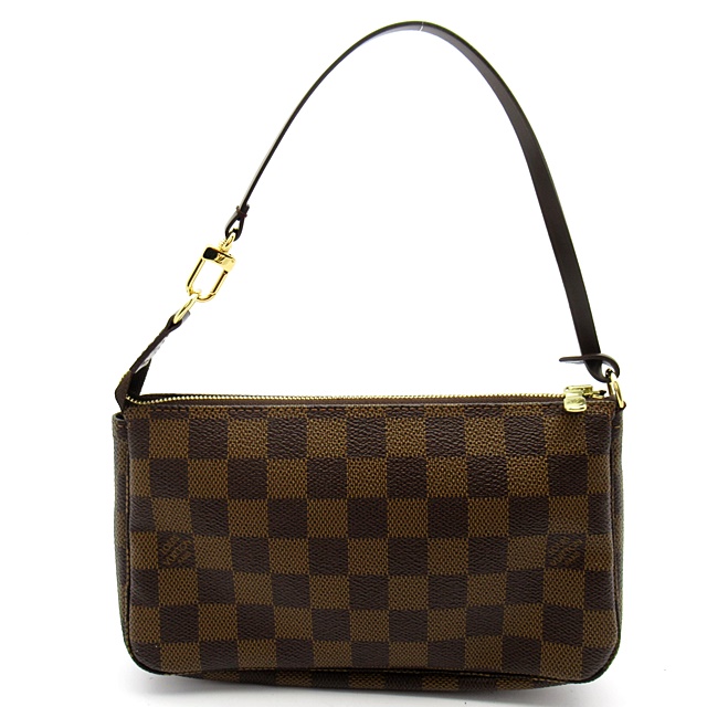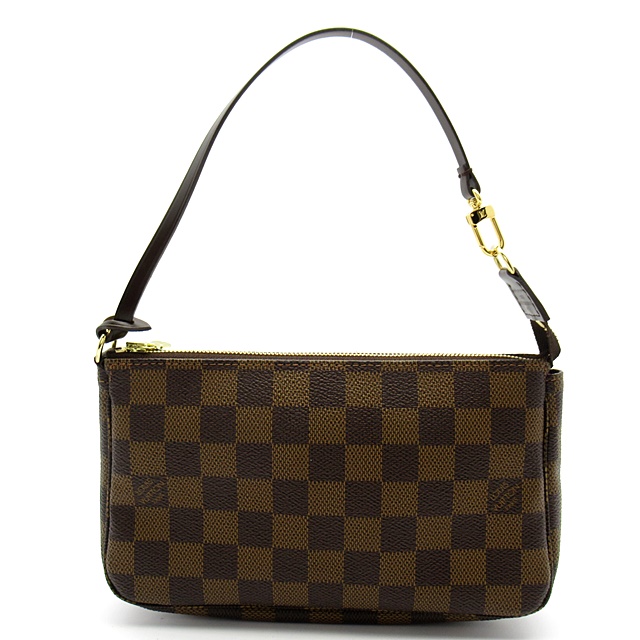 USED品。廃盤品。ヴィトンの定番人気、ダミエラインのアクセサリーポーチ。可愛いフォルムがとても印象的でストラップも取り外すことができます。
