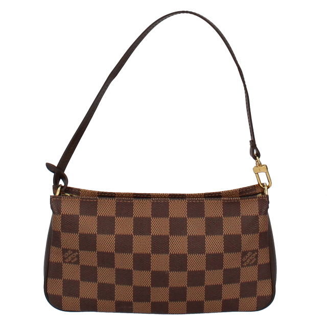 USED品。廃盤品。ヴィトンの定番人気、ダミエラインのアクセサリーポーチ。可愛いフォルムがとても印象的でストラップも取り外すことができます。