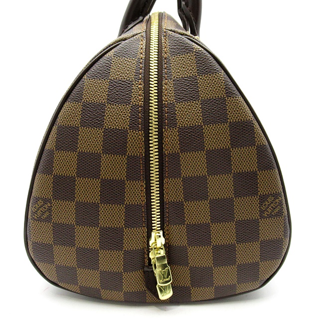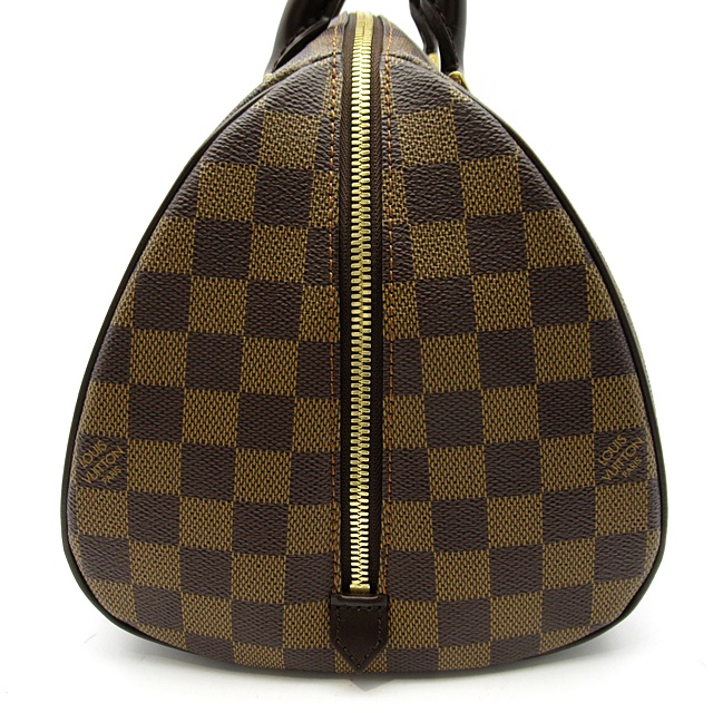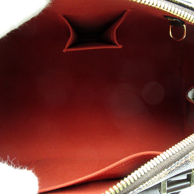 USED品。廃盤品。コロンとした三角フォルムが可愛いらしいダミエのハンドバッグです。ダブルファスナーがサイドの下の方まで大きく開くので、物の出し入れがとても楽です。