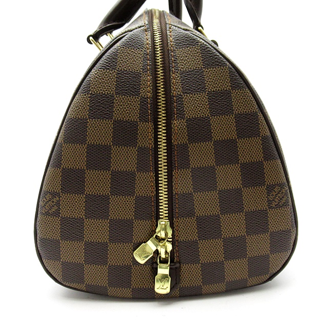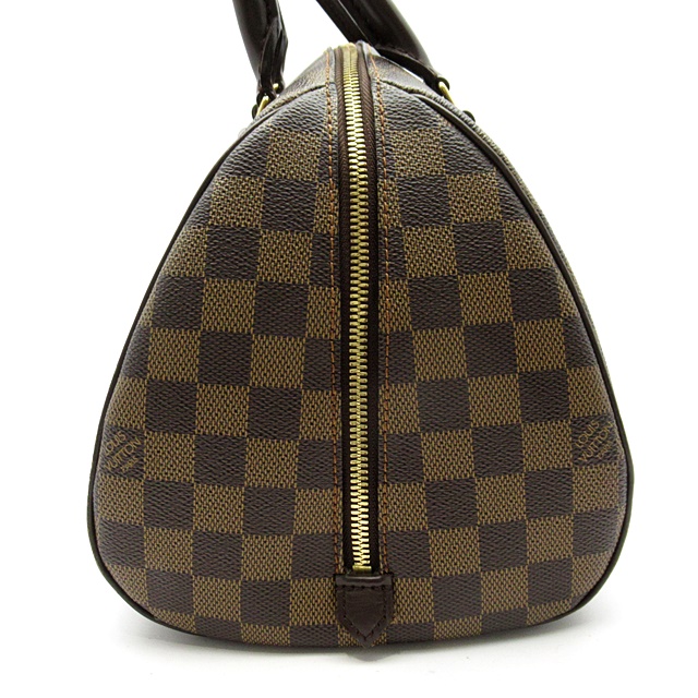 USED品。廃盤品。コロンとした三角フォルムが可愛いらしいダミエのハンドバッグです。ダブルファスナーがサイドの下の方まで大きく開くので、物の出し入れがとても楽です。