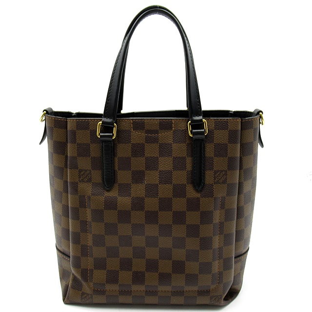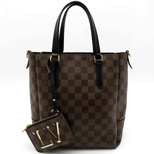 USED品。廃盤品。1968年に発表されたヴィンテージの「サック・プラ」から着想を得て、ダミエ・キャンバスで仕立て、染色されたレザーのトリミングと同系色のライニングを施しました。調節可能なストラップでさまざまな持ち方をお楽しみいただける、スマートで機能性の高いデザインです。取外しできるキュートな「LV」ポーチ付き。