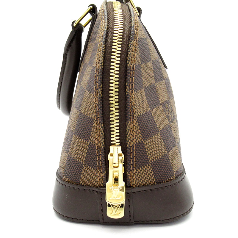 USED品。1934年に発表されたメゾンのアール・デコ調のバッグの特徴をそのまま受け継ぐ「アルマ BB」。ダミエ・キャンバスにゴールドカラーのパドロックとキー、2本のトロンハンドル、シックなレザーのキーベルをあしらいました。ルイ・ヴィトンならではのディテールがタイムレスなエレガンスを放ちます。取外し可能なストラップで、クロスボディバッグとしてもお使いいただけるチャーミングなアイテムです。