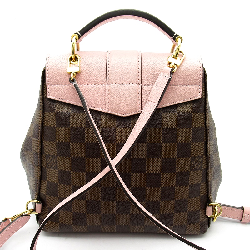 USED品。廃盤品。日常使いに最適な要素をすべて備える「クラプトン・バックパック」。クラシカルなダミエ・キャンバスに合わせたカラフルなレザーが、フレッシュな印象を添えます。