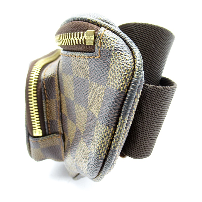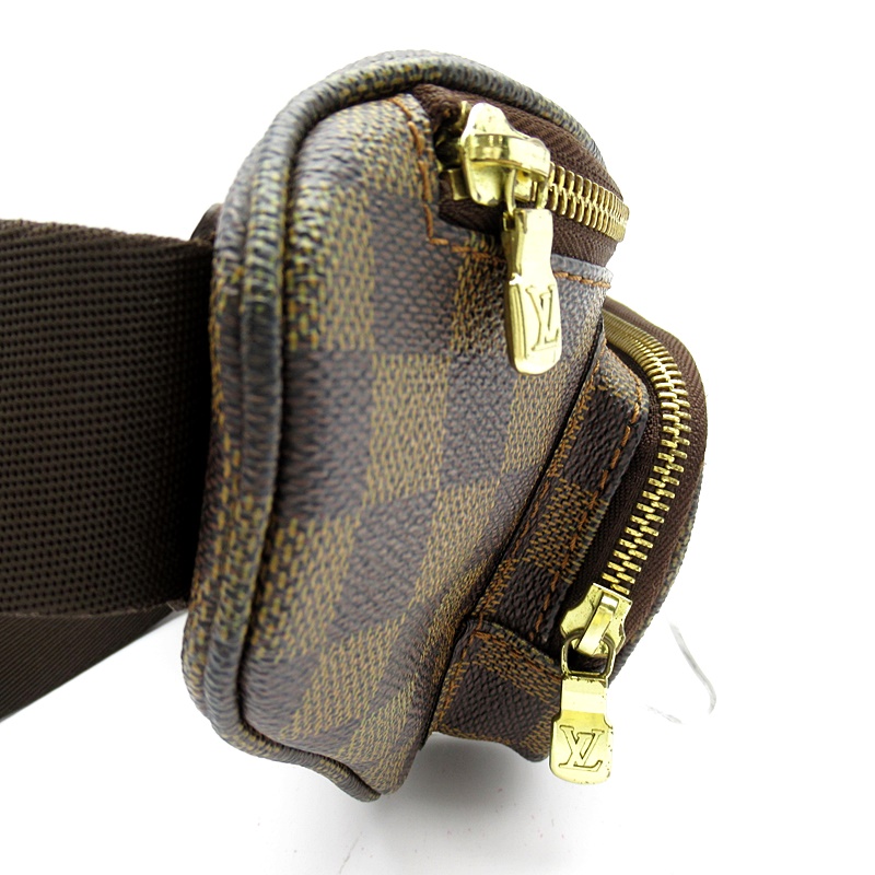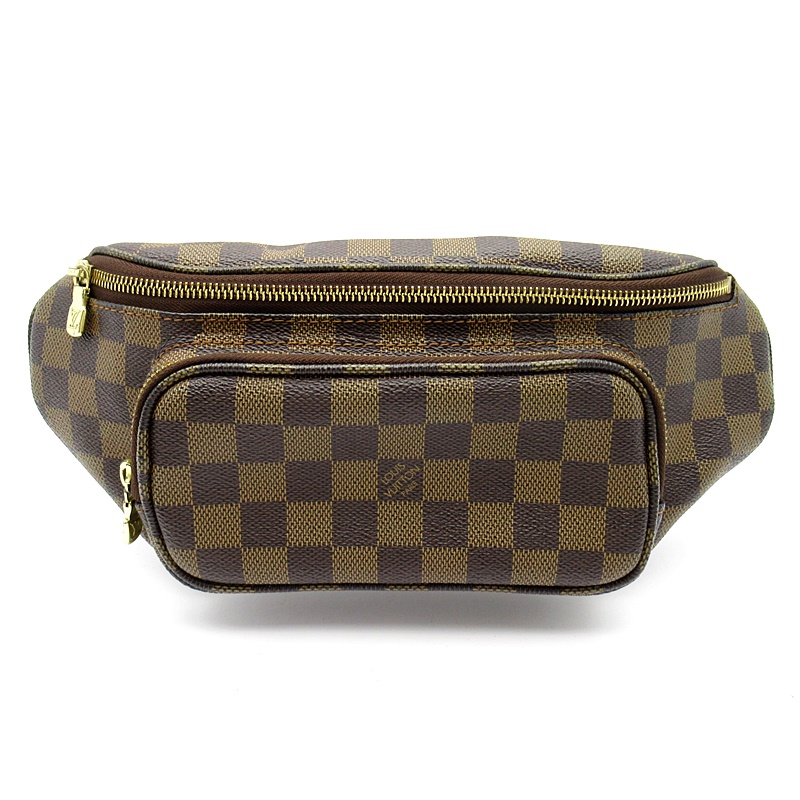 USED品。廃盤品。大人気のダミエラインのウエストポーチです。ポケットが前にも背面にも付いており、使いやすく大変便利です。